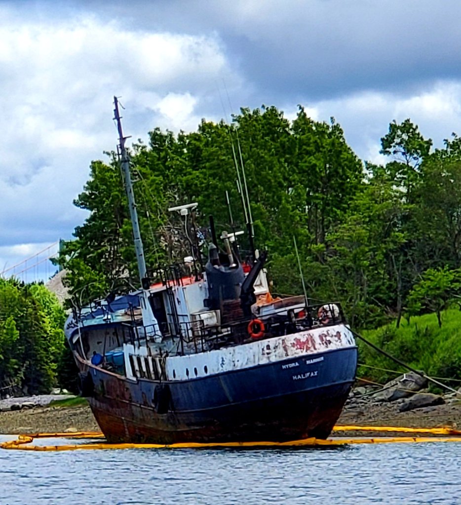 Thanks for this post, we were wondering the story as we see this often. Just curious if you happen to know the story of the abandoned wreck on the shoreline almost under the Macdonald Bridge behind the Coast Guard building? We happened to notice the derelict rusted wreck that actually looks as if someone built a dock around it! We sailed under the bridge last night and saw it!