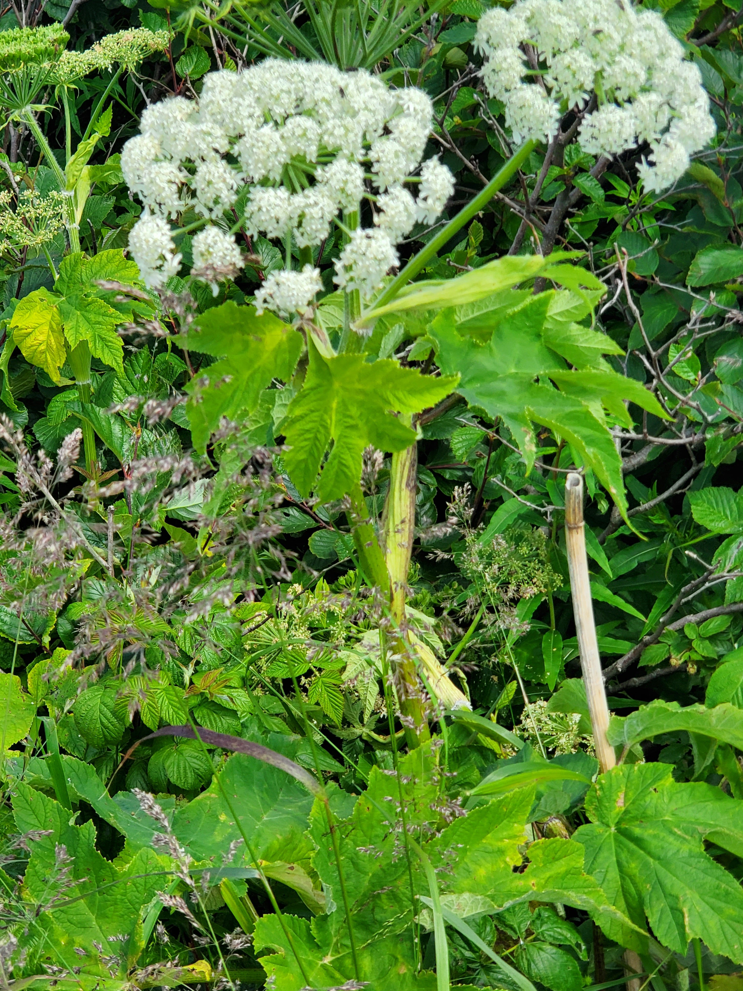 Heracleum lanatum- is a member of the carrot/parsley family, and like giant hogweed, produces sap containing chemicals that can irritate human skin. If you rub your eyes it could it could be very deadly