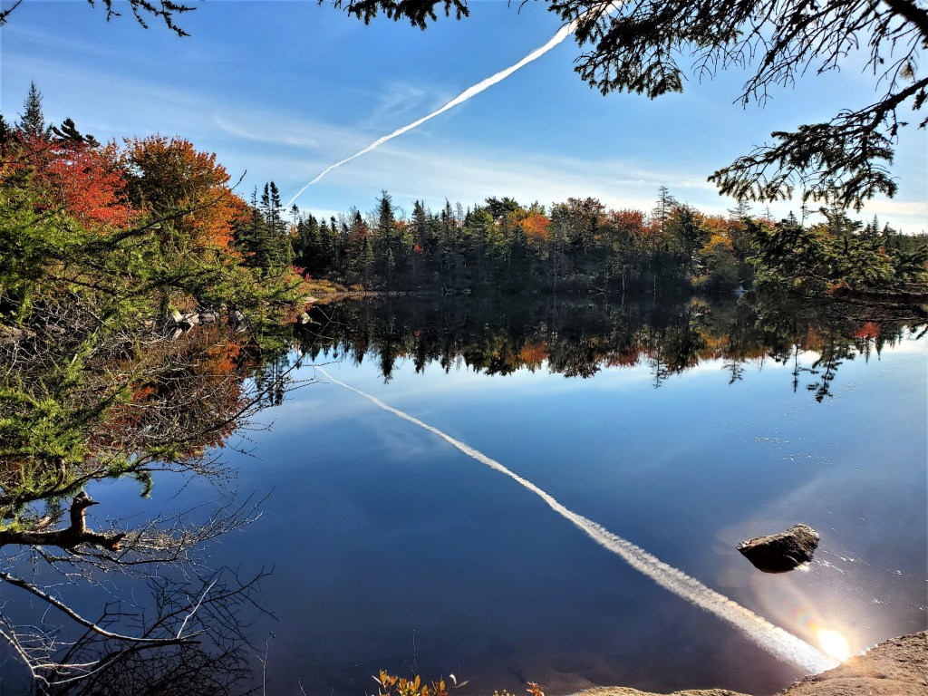 It caught my attention..a reflection in the pond from airplane ✈ cloud above.
