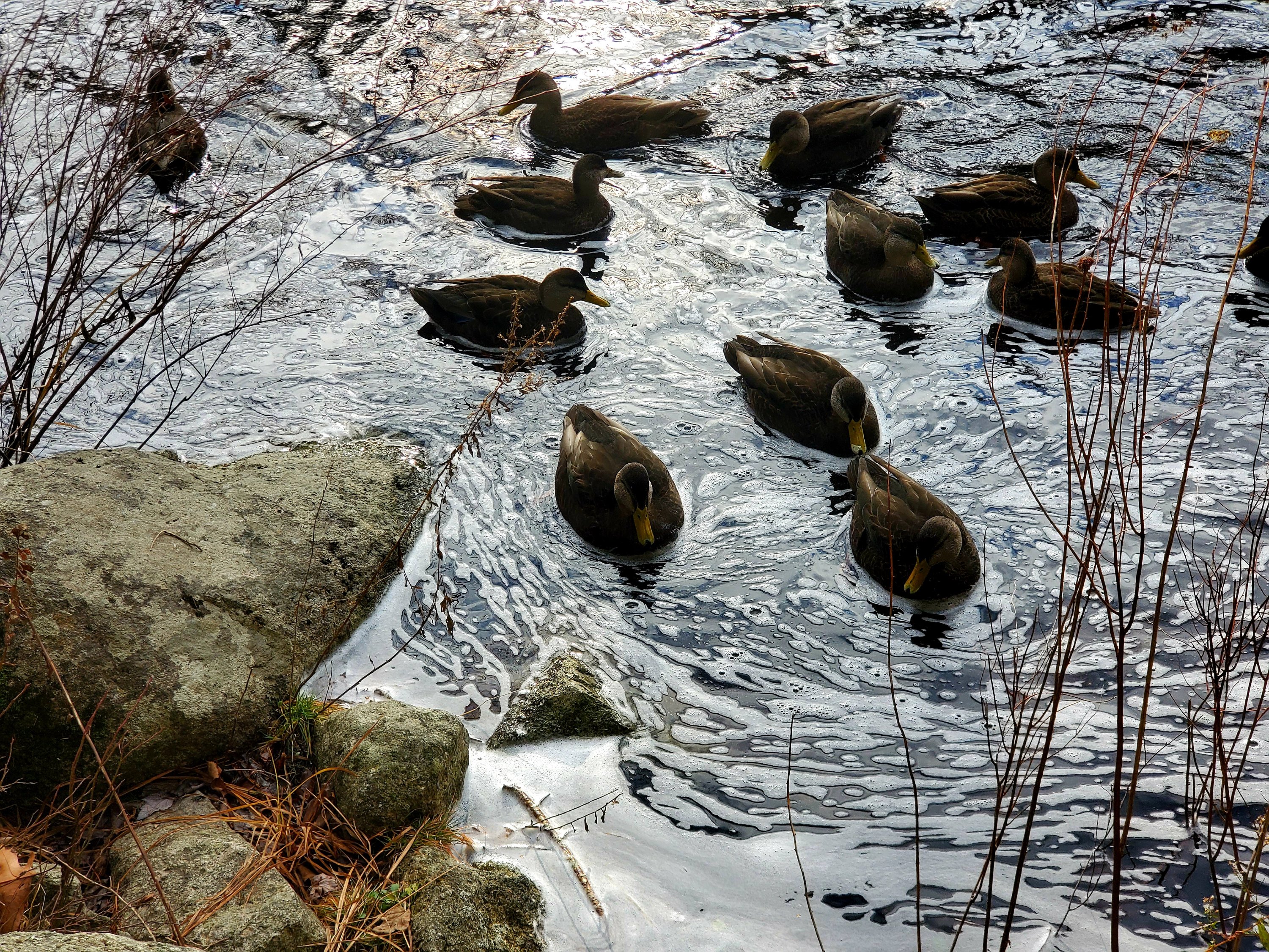 As we walked to the edge of the brook these ducks thought we feed them. I think alot of locals always hand them bread. Not me.