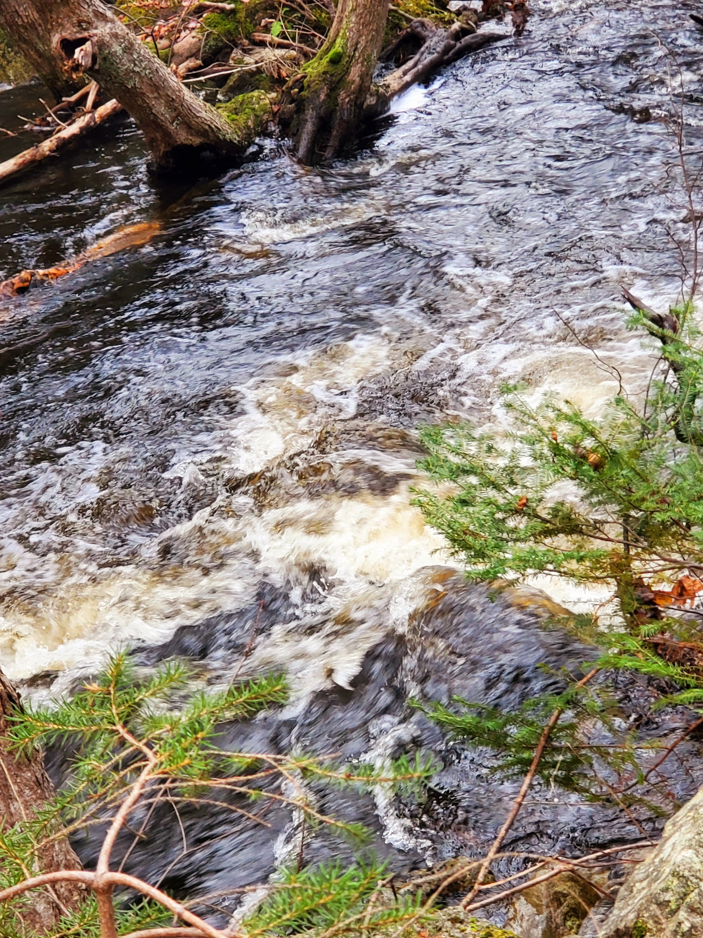 It was a blustery cold morning but worth walking through the woods. It was a very quiet day and no hikers in this area. Most of the leaves have disappeared but the roaring waters caught my attention in the brook.