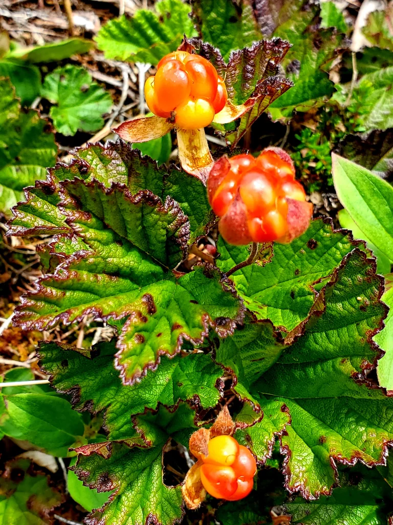 Rubus chamaemorus is a species of the rose family. In Newfoundland it is named bakeapple and used as a jam or in a pie. This plant is native to the regions where we spotted this in the northern region of Newfoundland.