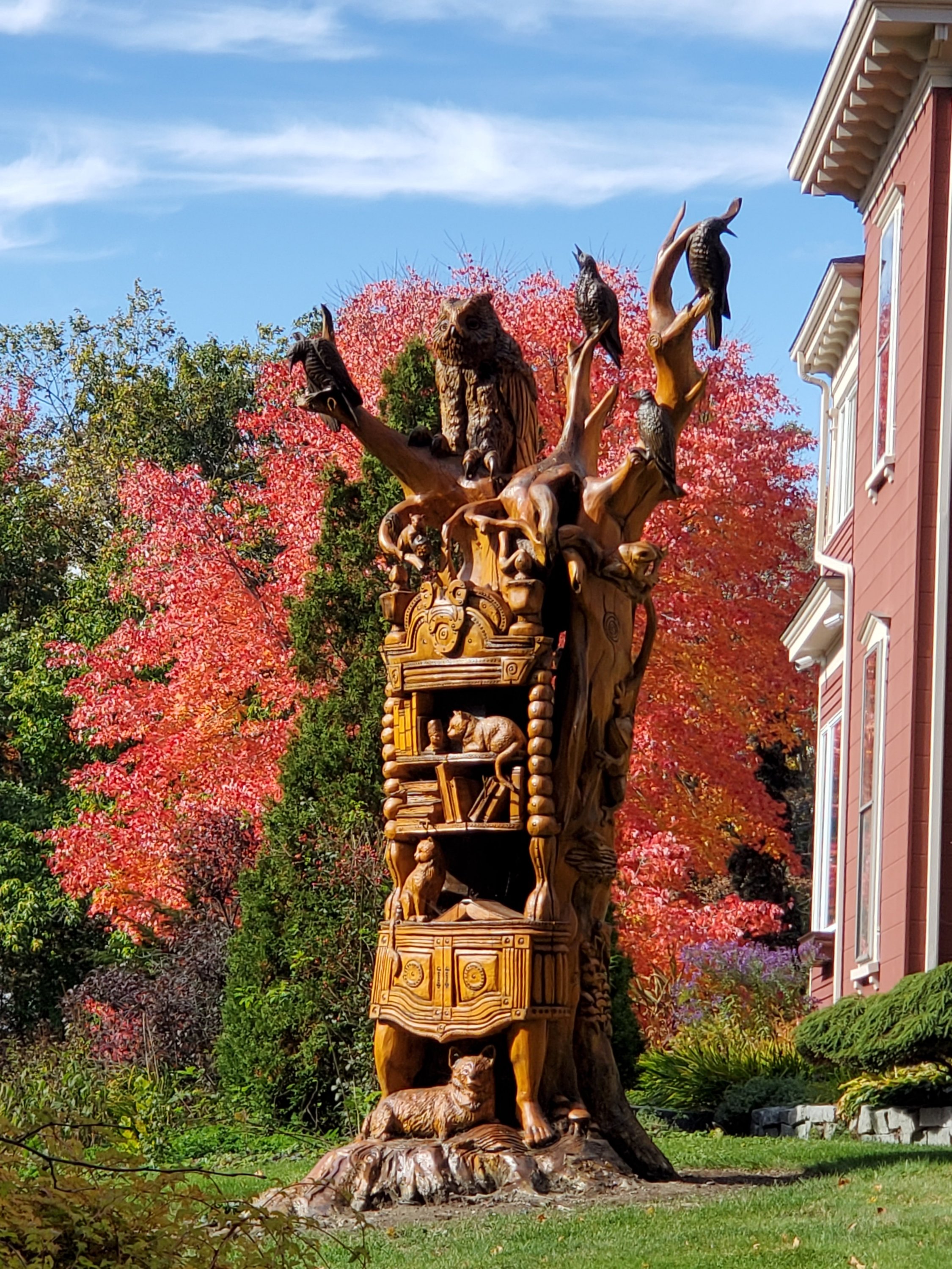 Such a great novelist. I sure have enjoyed all his books. How cool to actually see his house, and it is so beautiful. That tree sculpture is something else, and I like the cats on the bookshelves! 🙂