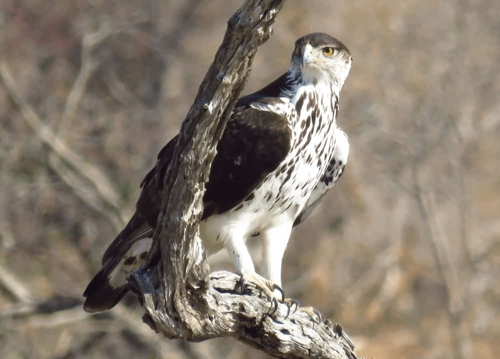 We then drove for quite a while without seeing much of anything. This surprised us as we wrongly assumed animals would always be here in large numbers, but the crater is huge and during the time of drought the animals rest out of the hot sun. When we reach a jungle area we spot a spectacular Ayres Hawk Eagle. He’s perched on a small branch and caught our attention.