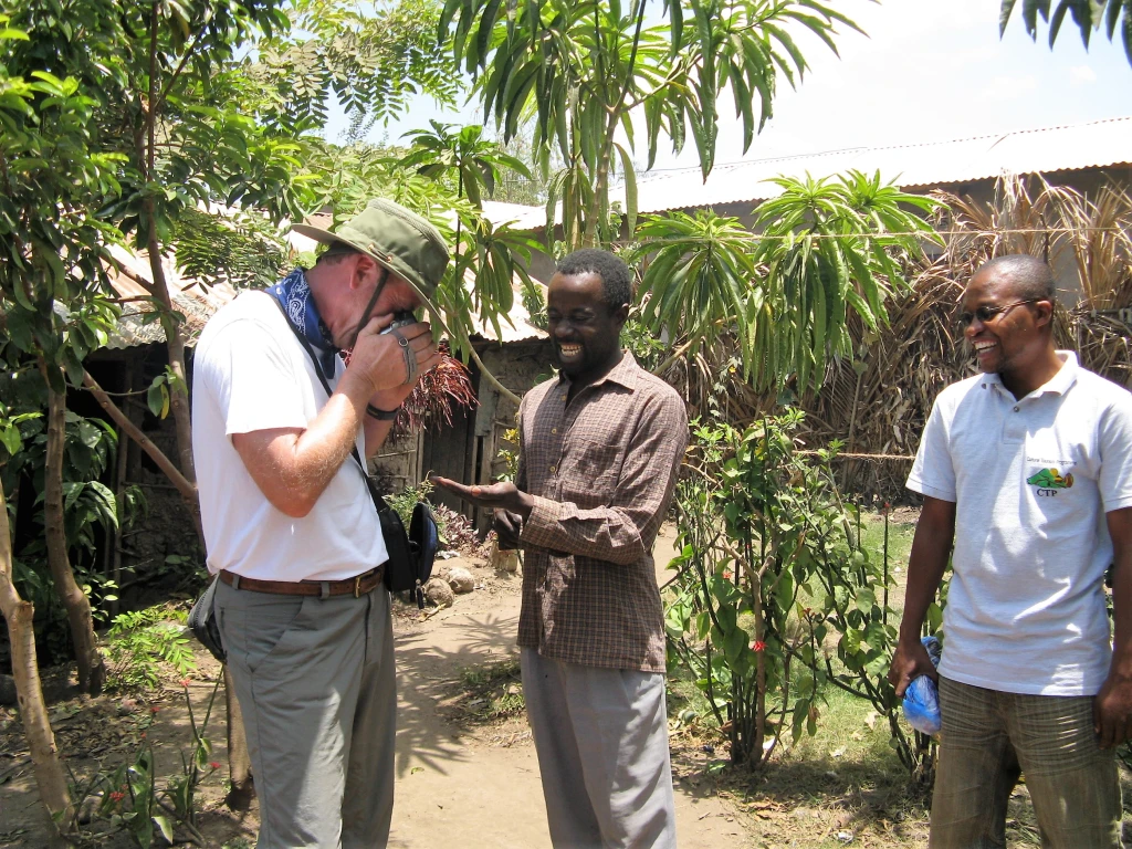 As we walk through the Mosquito River Village our guide Sunday points out the Muiri Tree, locally known as the Medicine Tree and also named Red Stinkwood in Kenya. The real name is Prunus Africana. Liquid extracts from bark are used in the treatment of benign prostatic hyperplasia and prostate gland hypertrophy. Leaves are used as an inhalant for fever. Water is added to the pounded bark, and the red liquid is used as a remedy for stomach-ache; bark extract may be used as a purgative for cattle. Word about the curative powers of the this tree reached European pharmaceutical companies around several decades ago. Today it is in danger of extinction due to over-harvesting.