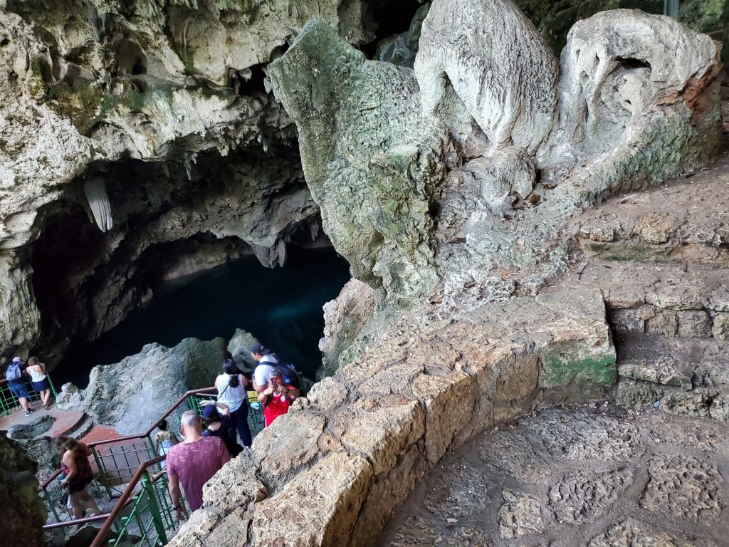 We walked down this winding entrance staircase leads to a series of caves, with pathways hugging three freshwater, iridescent blue lagoons.