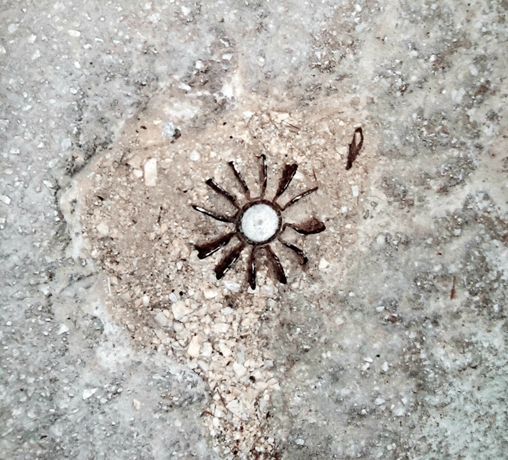 In Serbia we saw these Fragments of these on this sidewalk names the Rose Bombs
