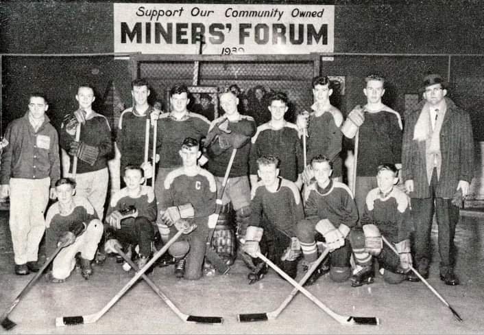 Members of the 1960 Morrison High School hockey team are shown following a game at the old Miners Forum in Glace Bay.