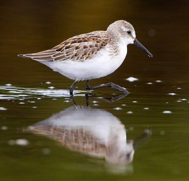This piper was reflected in the pond.
