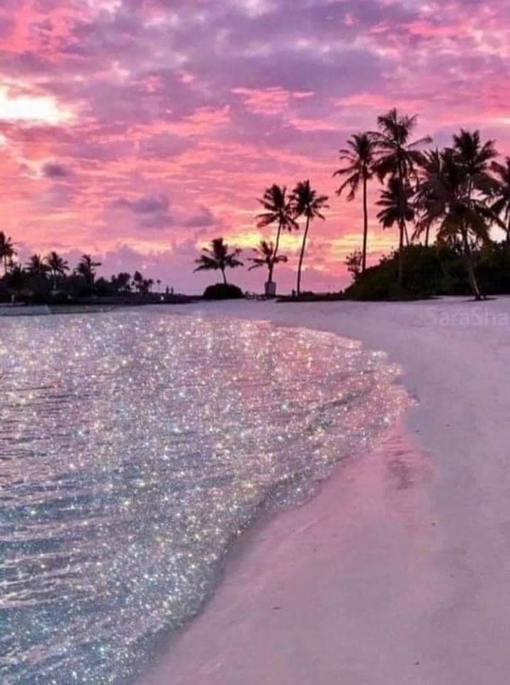 Oh, my gosh. Such amazingly colors. The pink sky with palm trees is breathtaking!