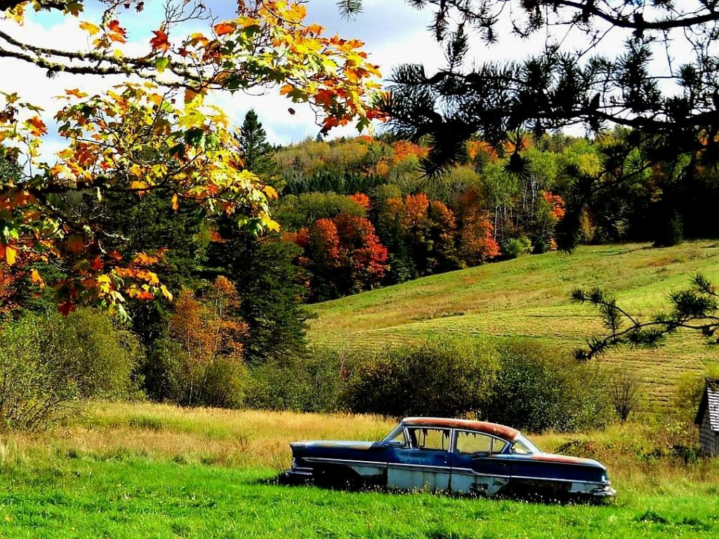 I love that juxtaposition of the rusted car and the autumn leaves and tree… marvelous image, Anita!!
