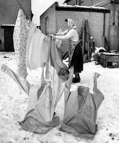 I saw all of these old photos with my Grandparents . Paperboy 1950’s I remember when hula hoops they were so worked right!! The kids today can’t figure out how to use them becuz of this. This Clothes Line was in their Backyard in Winter.