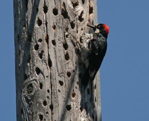 The Pileated Woodpecker is one of the biggest, most striking forest birds in Nova Scotia. I saw him on a power pole. He is leaving unique rectangular holes in the wood.