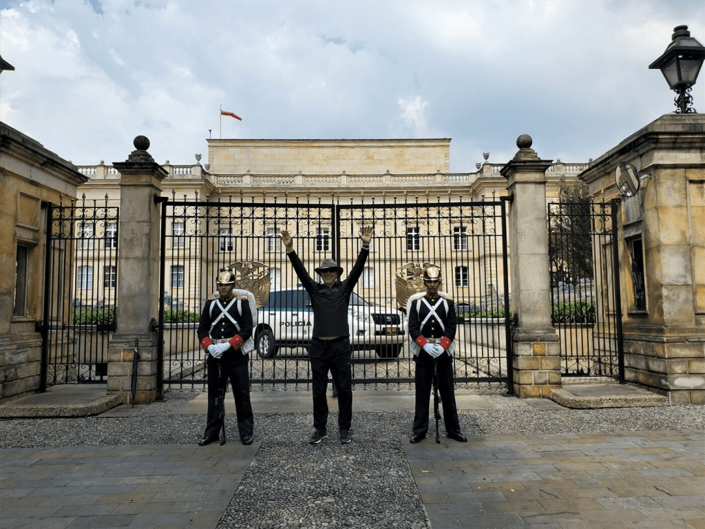 Bogota, Colombia- My husband had is arms up but we escaped from this area.