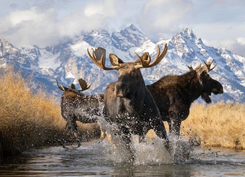 How striking the moose with large antlers, showing its strength, dominance and protection.